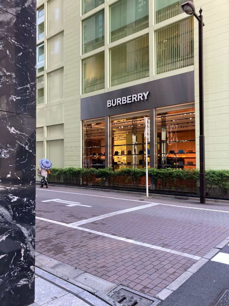 1FにBURBERRYが入っているグリーンのビルが見えてきます。